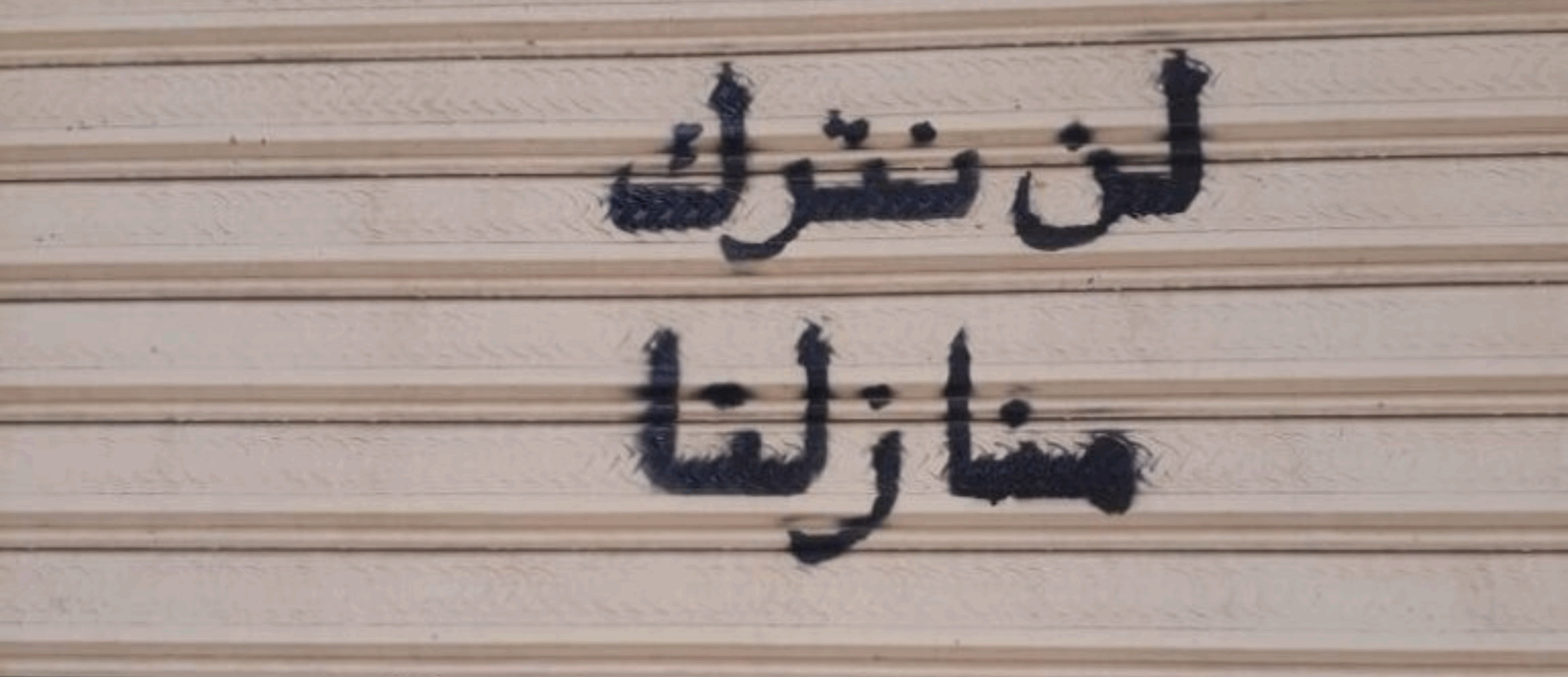 كل ما وجد كان مقطع فيديو قصير صوره بهاتفه، يظهر أحد الجيران وهو يزيل لافتة علقها الأهالي على جدار تحمل عبارة: "لا نترك منازلنا"، لافتة بسيطة تحوّلت إلى قرينة اتهام ثقيلة.