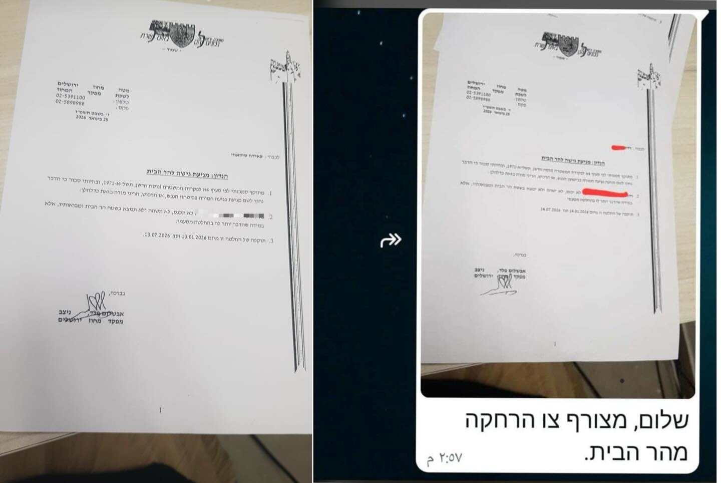 جاءت الرسائل بعنوان "إبعاد عن الأقصى" مرفقة بنسخ رقمية من تلك الأوامر