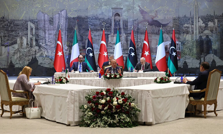 وأفاد المجلس بأنه "على الرغم من الاجتماع الثلاثي بين ميلوني وأردوغان والدبيبة، انخرطت إيطاليا وتركيا أيضا مع الأطراف الفاعلة (الخصوم) في شرق ليبيا خلال الصيف".