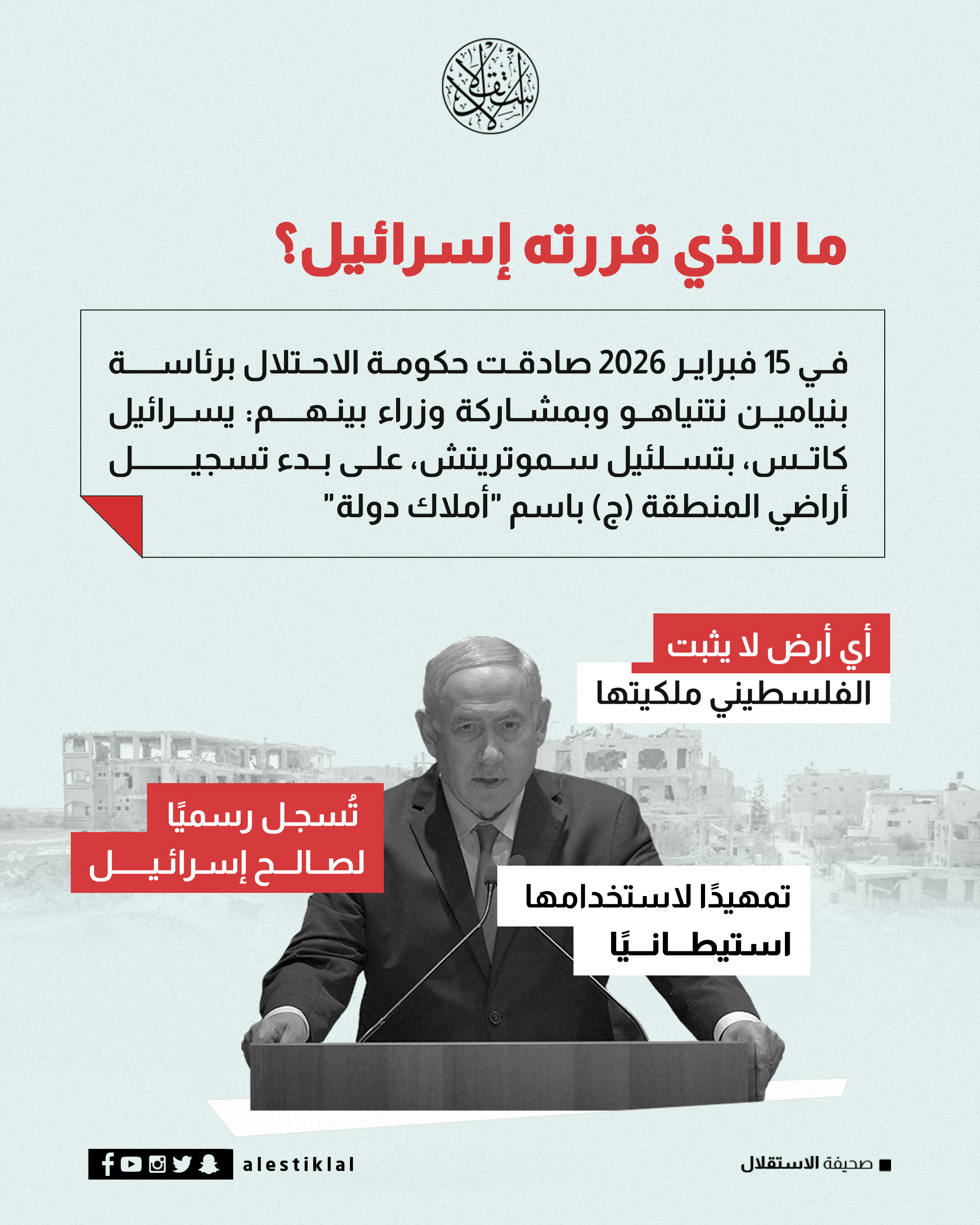 هل خُدع العرب؟ كيف مُرِّر تسجيل أراضي الضفة دون إعلان ضم رسمي؟ (إنفوجراف)إنفوجرافأيضــــــــــــاكيف تؤمن إسرائيل نفسها بعيدا عن أنظمة الثوارت المضادة الآيِلة للسقوط؟ (فيديو)غزة والضفة تحت القصف.. شهداء واستهداف للأسرى والطاقة الشمسيةفيتو الدخول ومعركة الشعار.. لماذا تعرقل إسرائيل عمل لجنة إدارة غزة؟لماذا ذهب أردوغان للسعودية؟ 4 قراءات مختصرة حول الزيارة (إنفوجراف)هل نجحت حماس في "تجريد شرعية وجود إسرائيل"؟.. معهد عبري يجيبرجل من بلغاريا يحب إسرائيل ولا يعرف فلسطين وسيدير ملف غزة في مجلس ترامب (فيديو)منذ ١٤ ساعةإنفوجرافالبرلمان الأوروبي يقر تعديلات على قوانين اللجوء .. فما أبرز هذه التعديلات؟ (إنفوجراف)أبرز المعتقلين الذين قتلهم الإهمال الطبي في سجون السيسي (إنفوجراف)هل خُدع العرب؟ كيف مُرِّر تسجيل أراضي الضفة دون إعلان ضم رسمي؟ (إنفوجراف)كيف انتهت مسيرة أحد أقوى رجال الموانئ بسبب علاقته بـ جيفري إبستين؟ (إنفوجراف)فلسطينهل خُدع العرب؟ كيف مُرِّر تسجيل أراضي الضفة دون إعلان ضم رسمي؟ (إنفوجراف)ترامب يخدع العرب ويعطي نتنياهو الضوء الأخضر لسرقة أراضي الضفة.. ما القصة؟هل نجحت حماس في "تجريد شرعية وجود إسرائيل"؟.. معهد عبري يجيبكيف تؤمن إسرائيل نفسها بعيدا عن أنظمة الثوارت المضادة الآيِلة للسقوط؟ (فيديو)