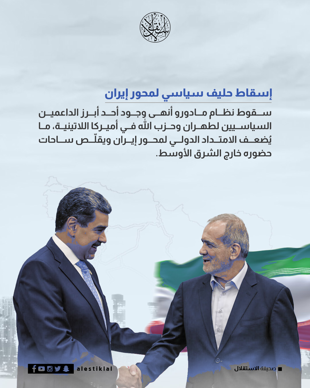 ماذا كسبت إسرائيل من سقوط نظام مادورو؟ (إنفوجراف)إنفوجرافأيضــــــــــــابعد اختطاف مادورو وتهديد دول أخرى.. أميركا على طريق "سايكس–بيكو" جديدةلماذا يشكل سقوط نظام مادورو "ضربة قاسية" لإيران وحزب الله؟حلف أمني جديد قيد التشكل يضم باكستان – تركيا – السعودية.. ما هو؟ (إنفوجراف)16 عاما.. فرنسا تمنع الصيام والحجاب وتزعم أنه عنف أسري (فيديو)فنزويلا.. بلد غني وشعب فقير (إنفوجراف)صدع غير مسبوق.. هل تشعل غيرنلاند المواجهة المنتظرة بين أميركا وأوروبا؟منذ يوم واحدإنفوجرافذا لاين.. انهيار حلم ابن سلمان الذي وُلد ومات في الأرض القاحلة (فيديو)ماذا كسبت إسرائيل من سقوط نظام مادورو؟ (إنفوجراف)محام وناشط مقدسي: عسكرة القدس تنسف حلم دولة فلسطين (إنفوجراف)بعد خروجها من جنوب اليمن.. 4 مسارات قد تنتهجها الإمارات (إنفوجراف)دوليصدع غير مسبوق.. هل تشعل غيرنلاند المواجهة المنتظرة بين أميركا وأوروبا؟16 عاما.. فرنسا تمنع الصيام والحجاب وتزعم أنه عنف أسري (فيديو)شريعة الغاب وثقافة الكاوبوي.. واشنطن تختطف رئيس فنزويلا وناشطون: بلطجة دوليةفنزويلا.. بلد غني وشعب فقير (إنفوجراف)
