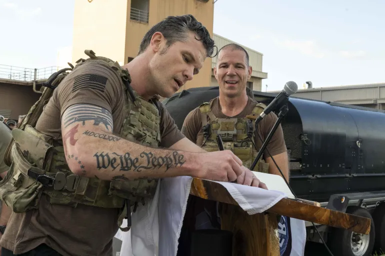 هيغسيث لا يخفي خلفيته الدينية، بل يعبر عنها عبر أوشام تحمل رموزا تاريخية مثيرة للجدل.